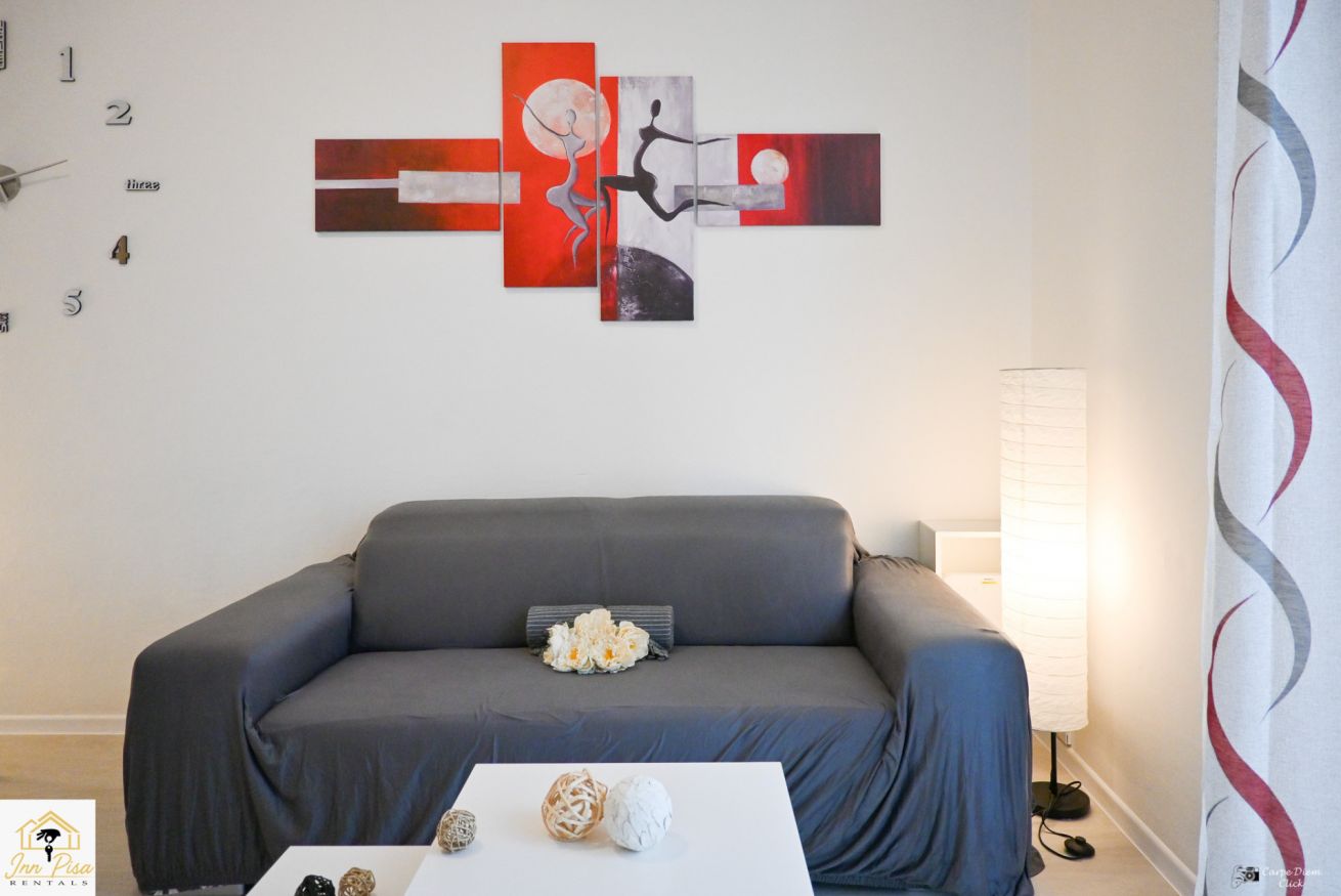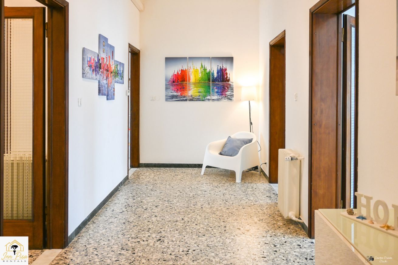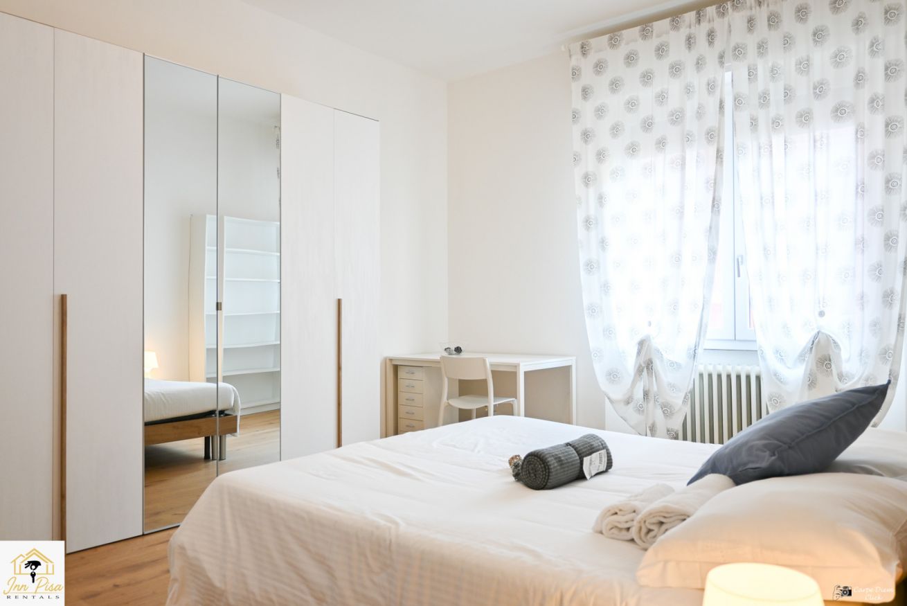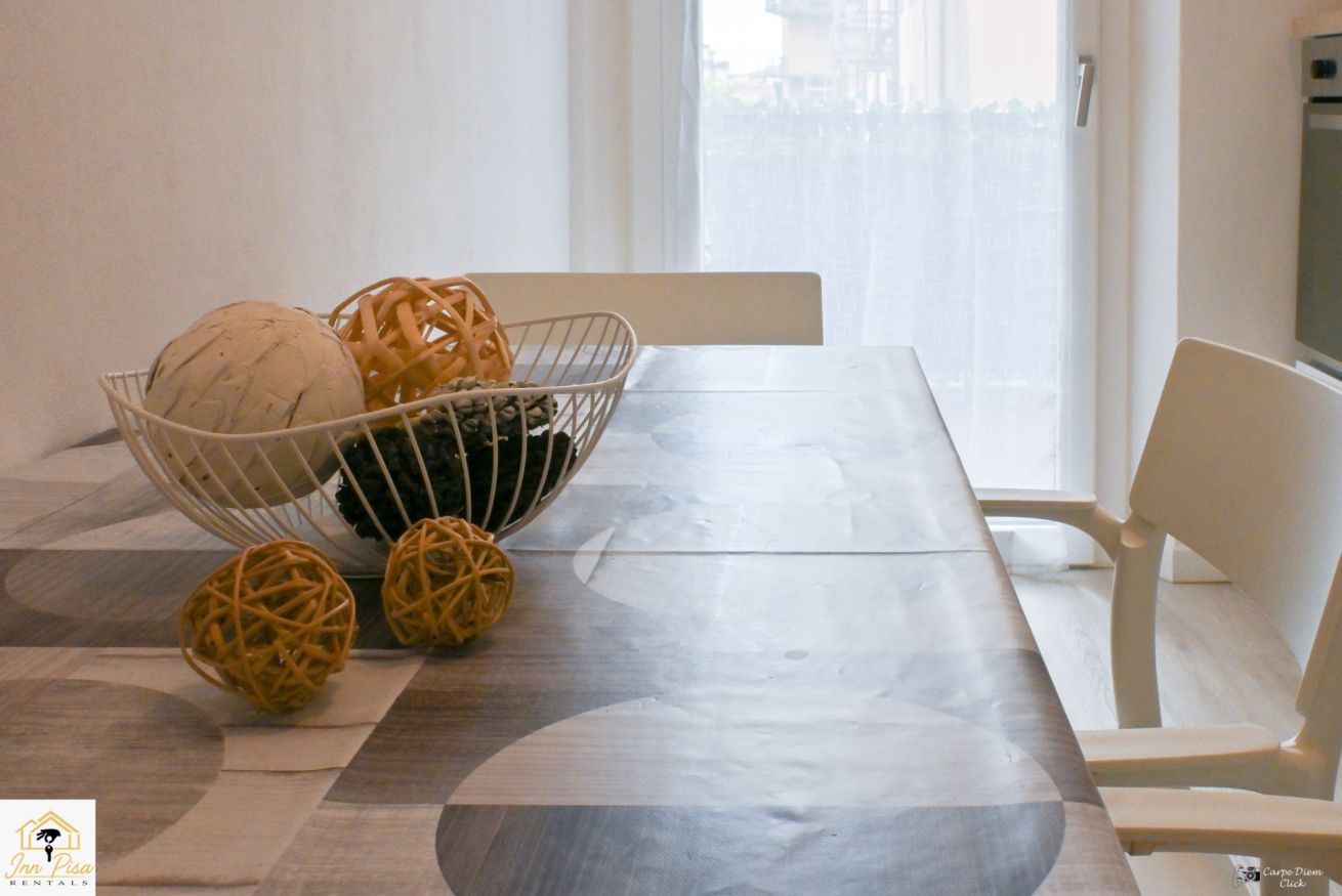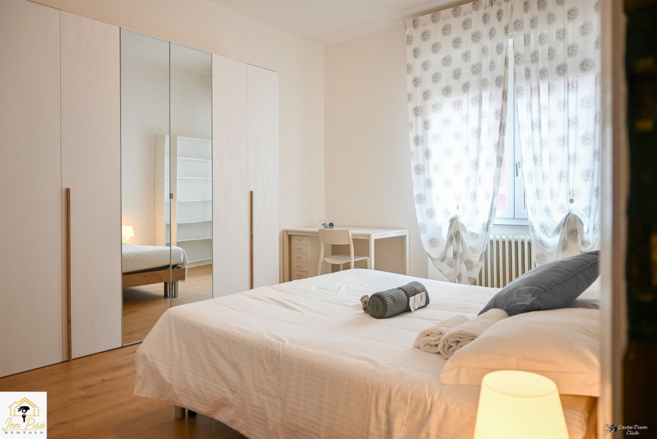 Inn Pisa Rentals - The Modern City Flat si trova a due passi dall'aeroporto di Pisa e dalla stazione dei treni.Molto vicino a tutte le principali attrazioni turistiche della città è ampio e molto luminoso,arredato con gusto in stile moderno e ricco di particolari che lo rendono davvero gradevole e confortevole.Posto al 1 piano senza ascensore,può ospitare fino a 8 persone. Si compone di ingresso, soggiorno con divano,cucina abitabile completamente attrezzata,4 camere matrimoniali,2 bagni,2 terrazzi attrezzati,WIFI