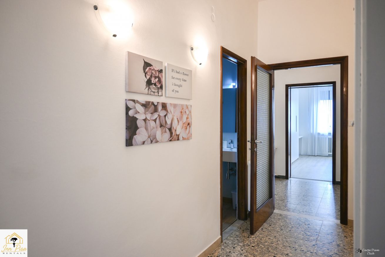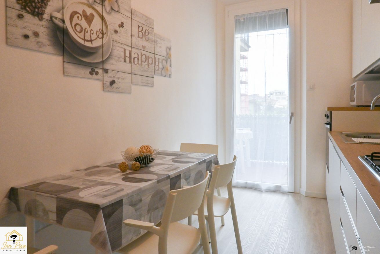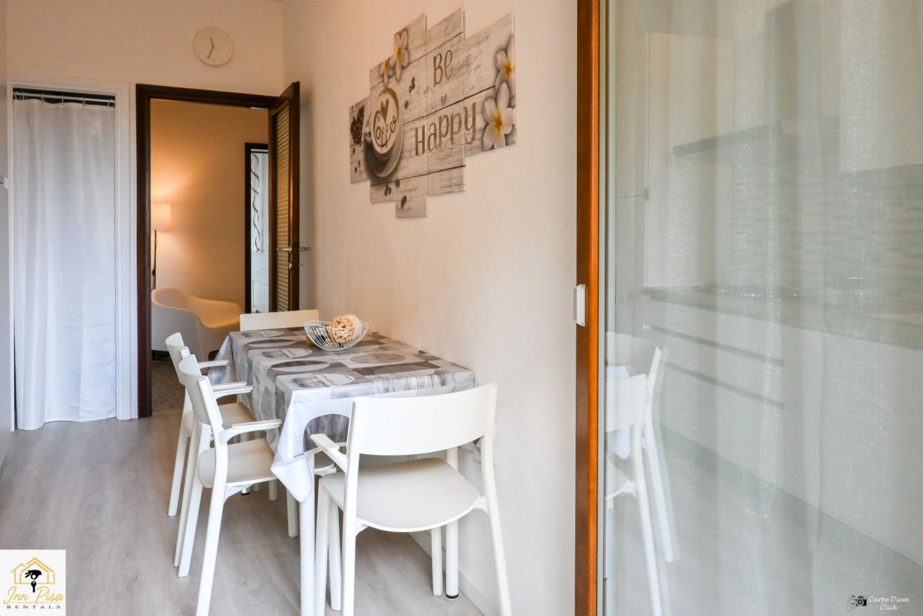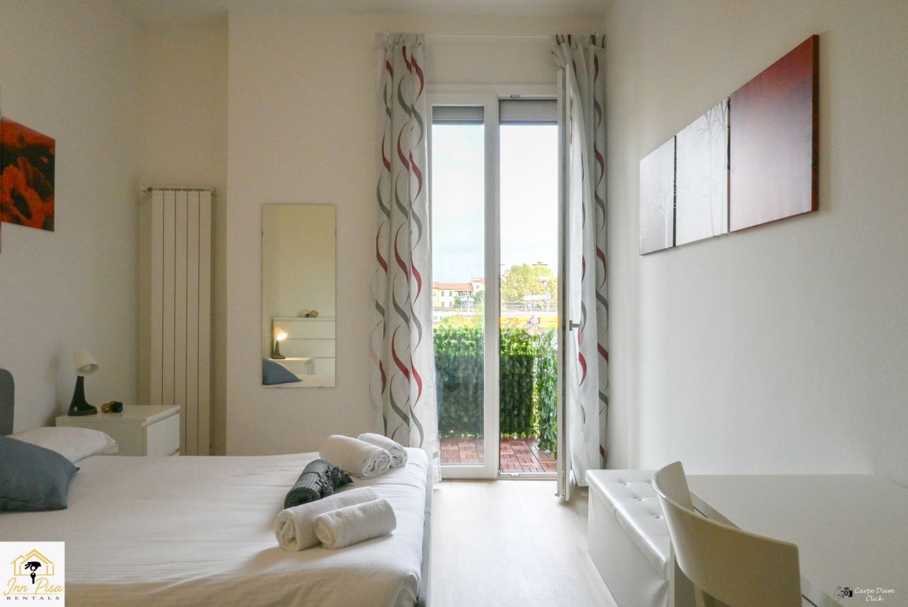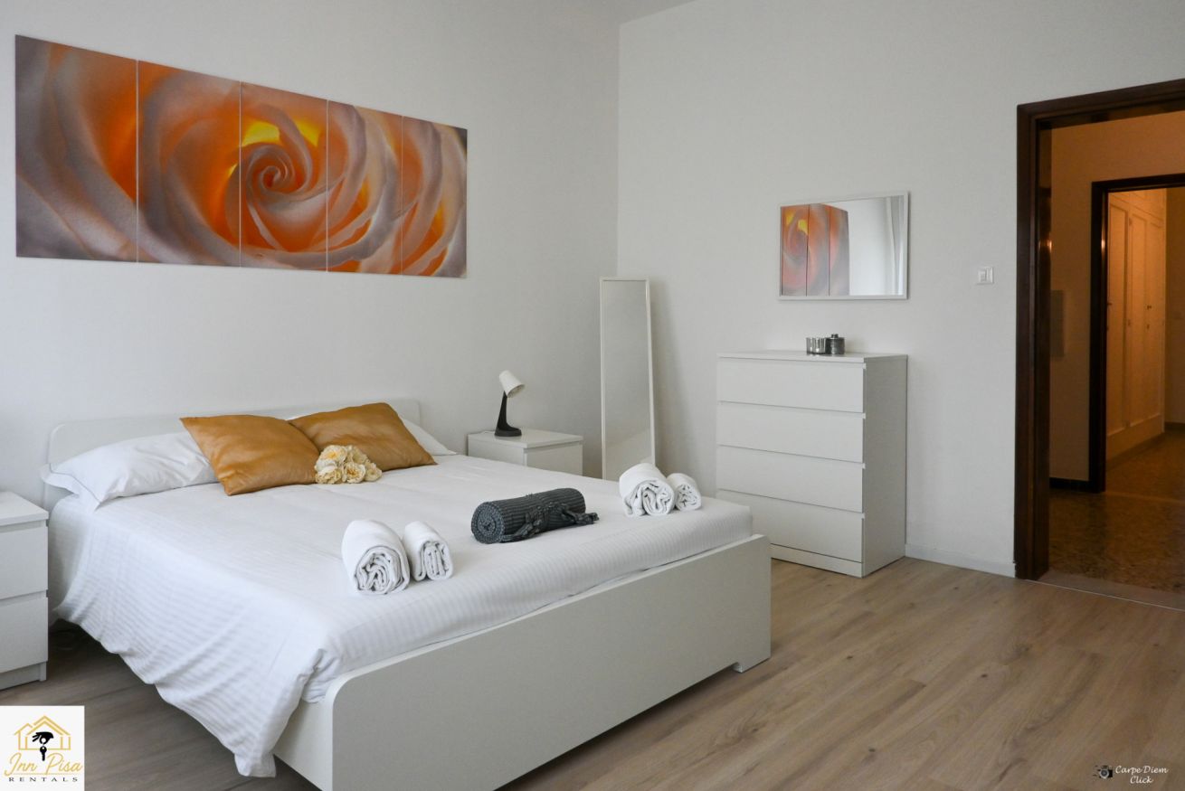 Inn Pisa Rentals - The Modern City Flat si trova a due passi dall'aeroporto di Pisa e dalla stazione dei treni.Molto vicino a tutte le principali attrazioni turistiche della città è ampio e molto luminoso,arredato con gusto in stile moderno e ricco di particolari che lo rendono davvero gradevole e confortevole.Posto al 1 piano senza ascensore,può ospitare fino a 8 persone. Si compone di ingresso, soggiorno con divano,cucina abitabile completamente attrezzata,4 camere matrimoniali,2 bagni,2 terrazzi attrezzati,WIFI