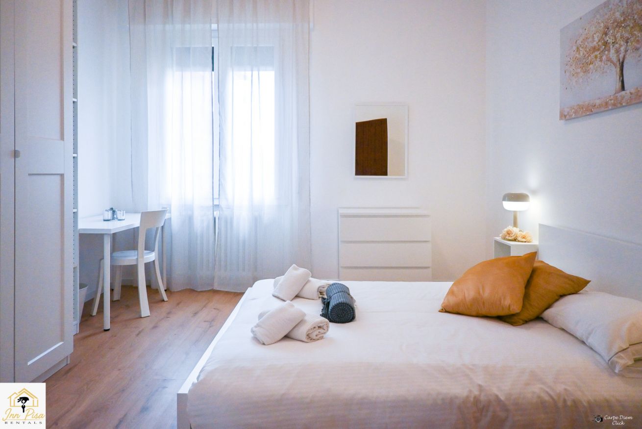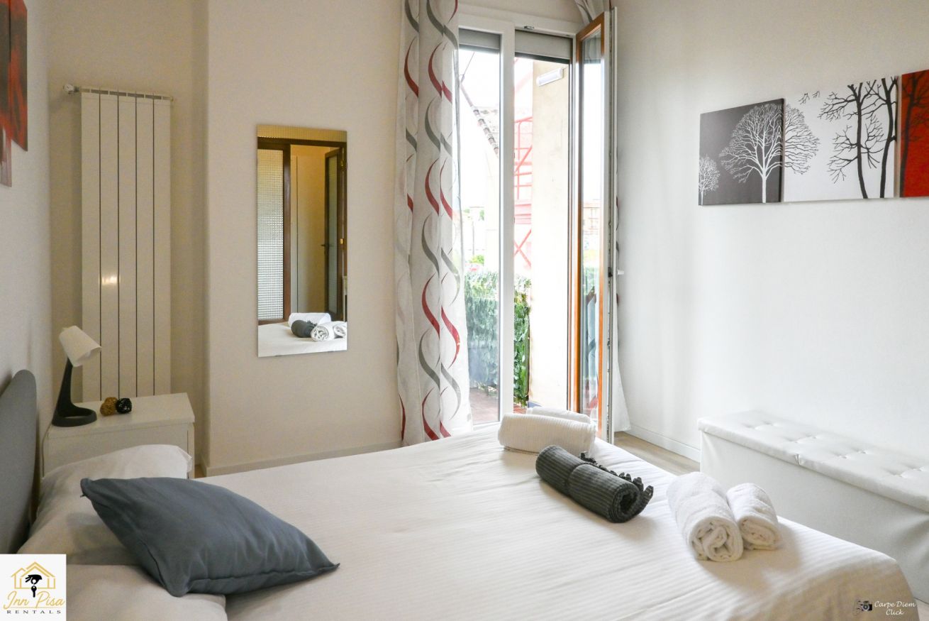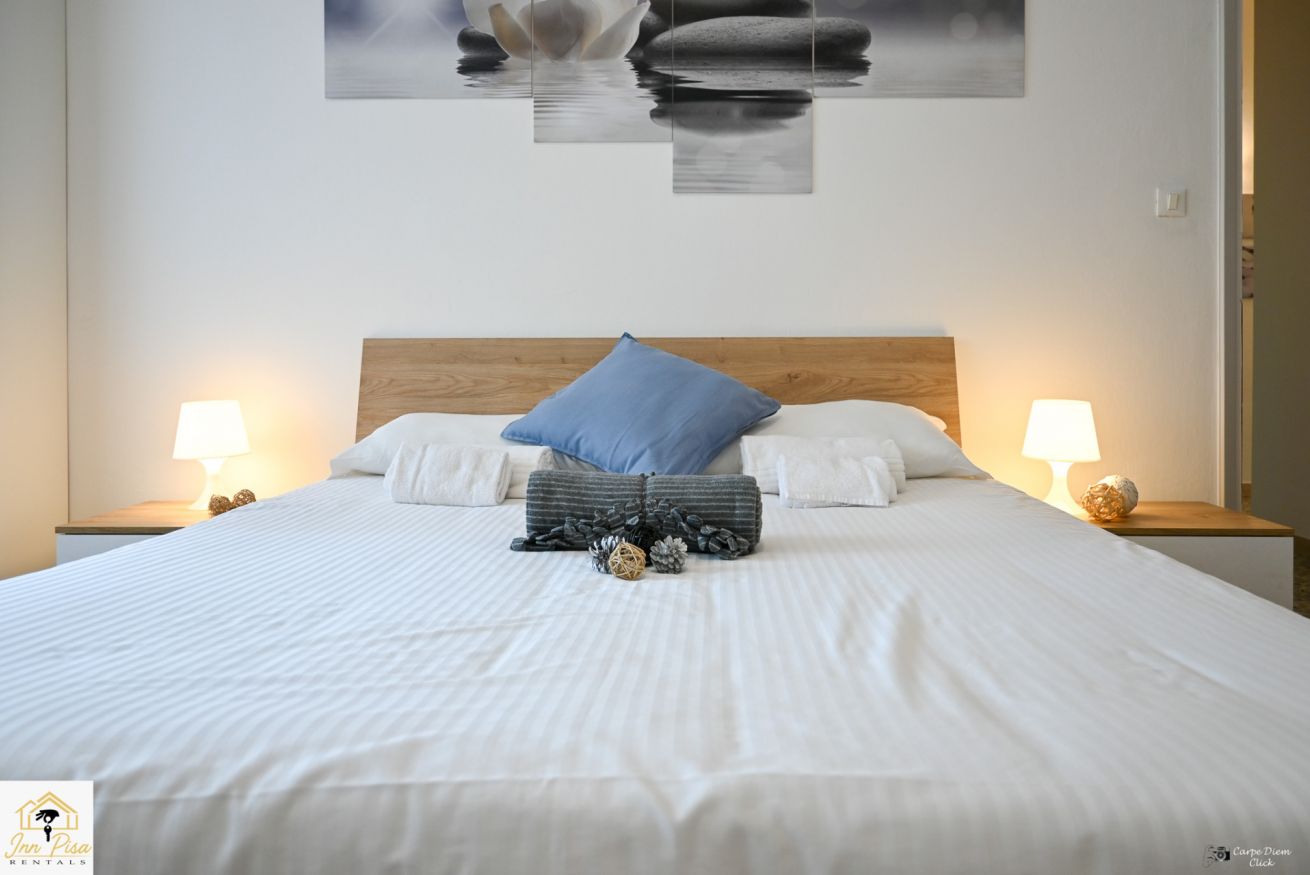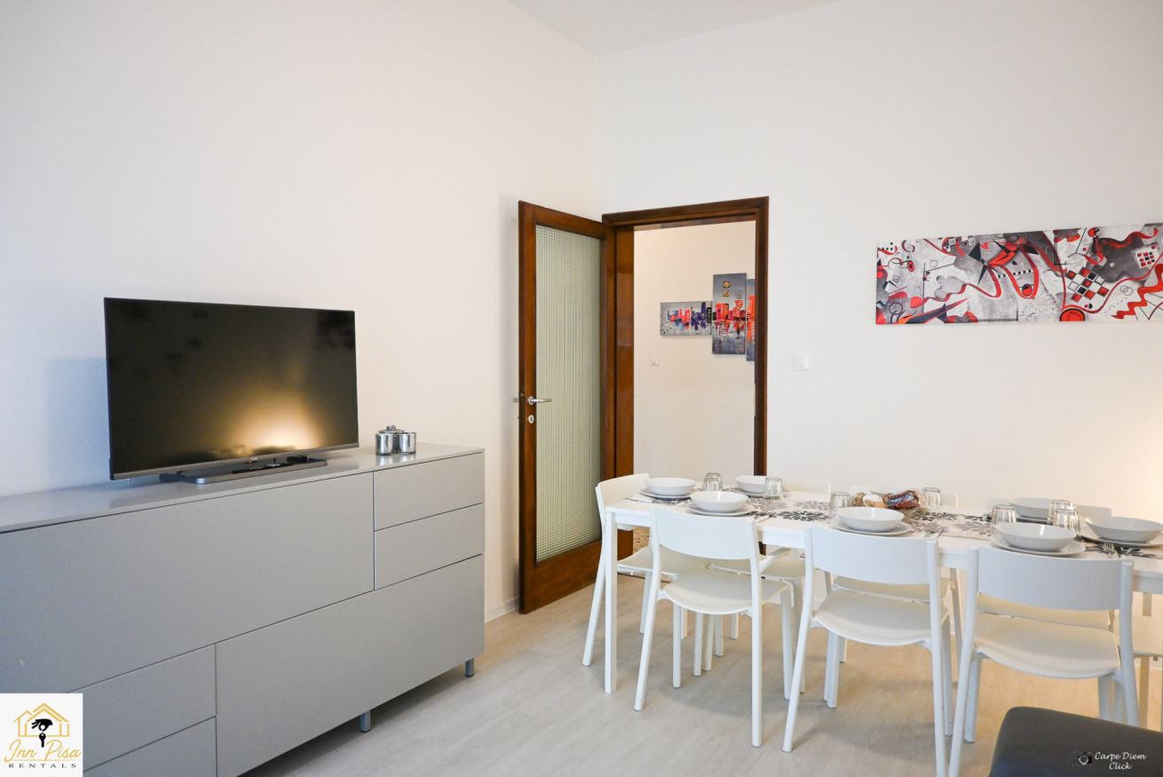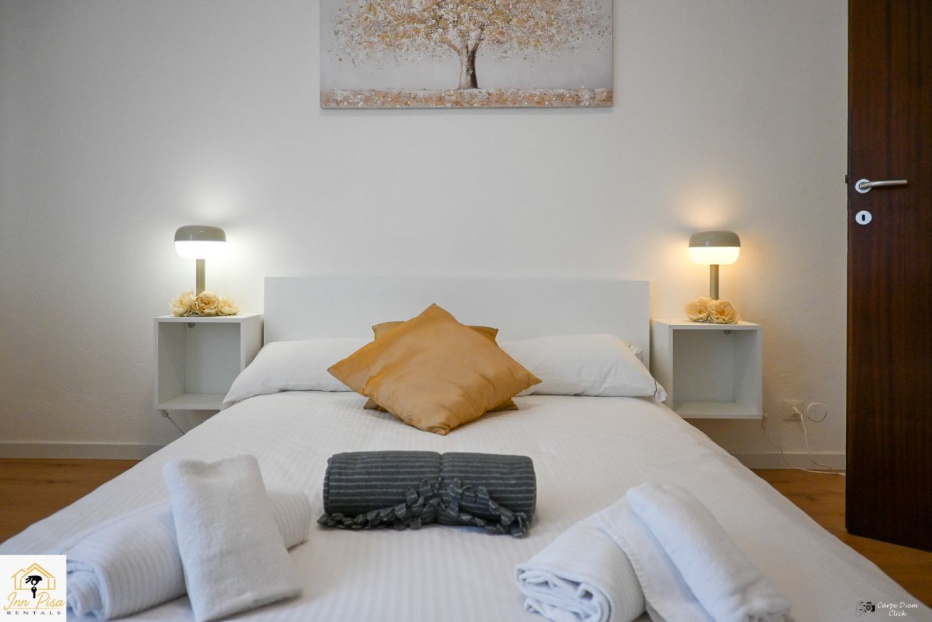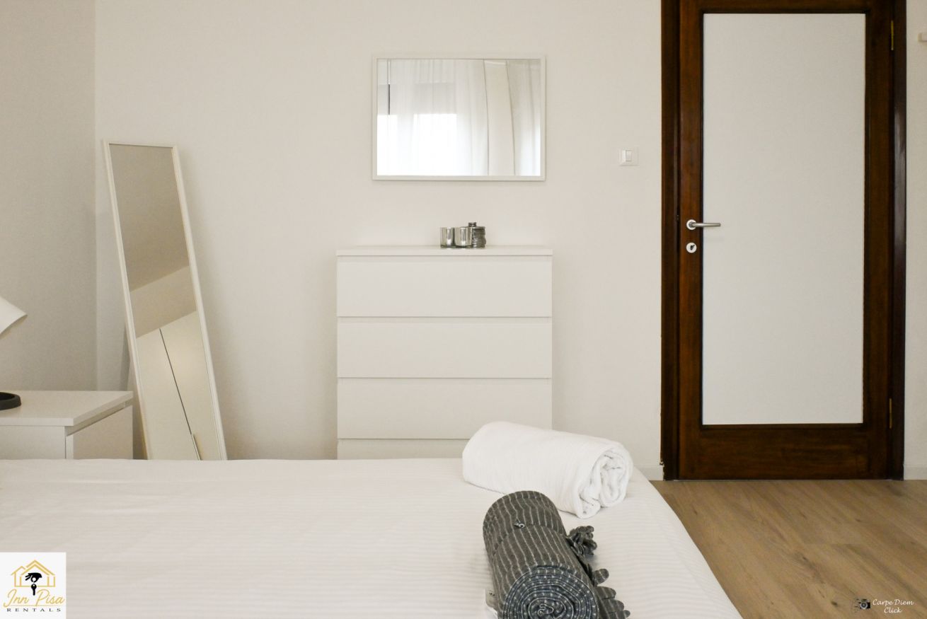 Inn Pisa Rentals - The Modern City Flat si trova a due passi dall'aeroporto di Pisa e dalla stazione dei treni.Molto vicino a tutte le principali attrazioni turistiche della città è ampio e molto luminoso,arredato con gusto in stile moderno e ricco di particolari che lo rendono davvero gradevole e confortevole.Posto al 1 piano senza ascensore,può ospitare fino a 8 persone. Si compone di ingresso, soggiorno con divano,cucina abitabile completamente attrezzata,4 camere matrimoniali,2 bagni,2 terrazzi attrezzati,WIFI