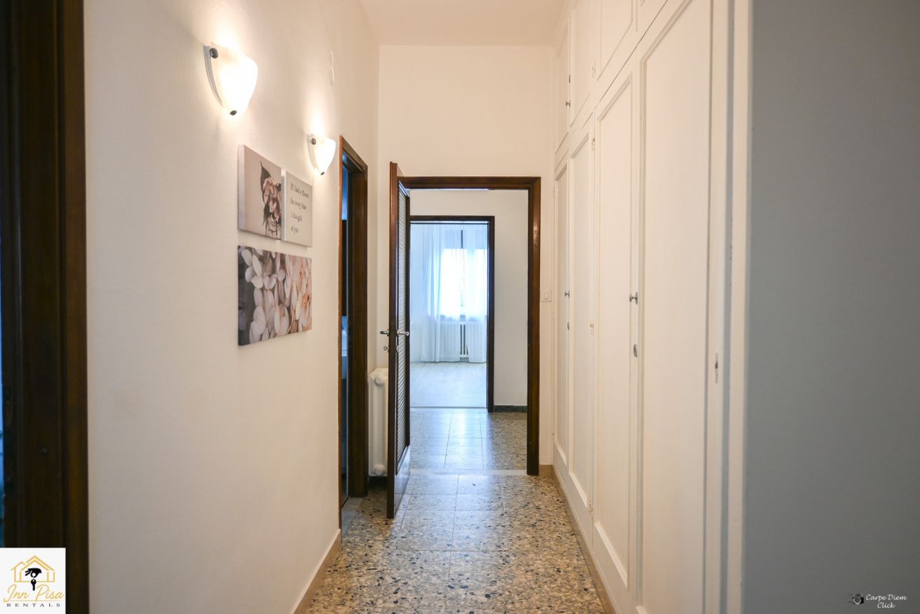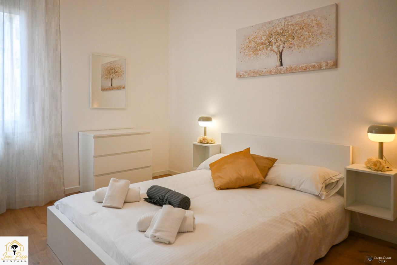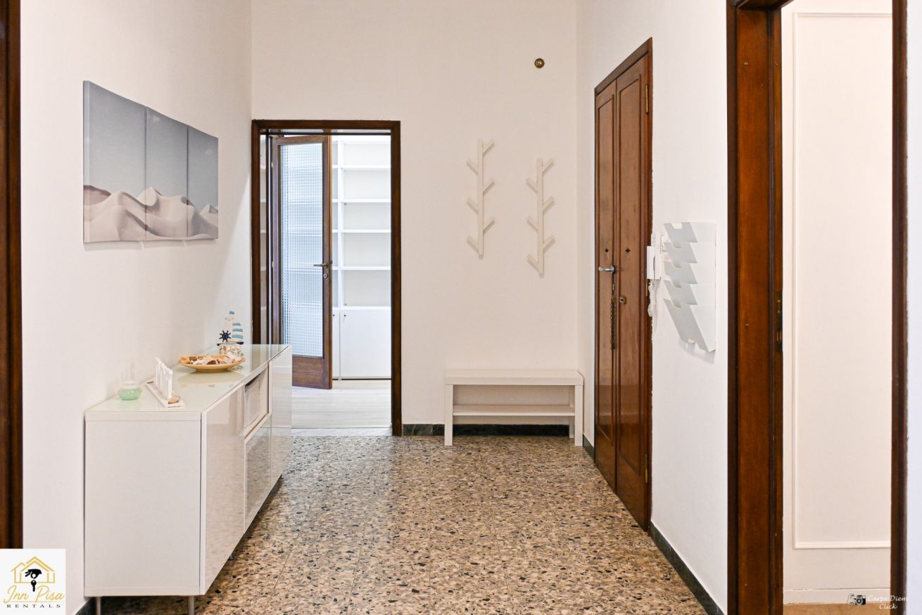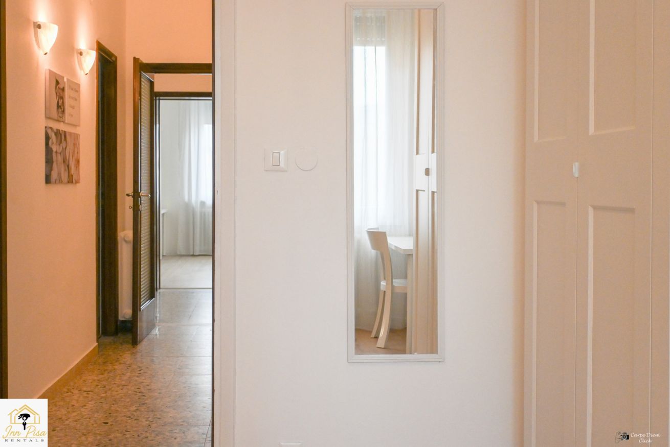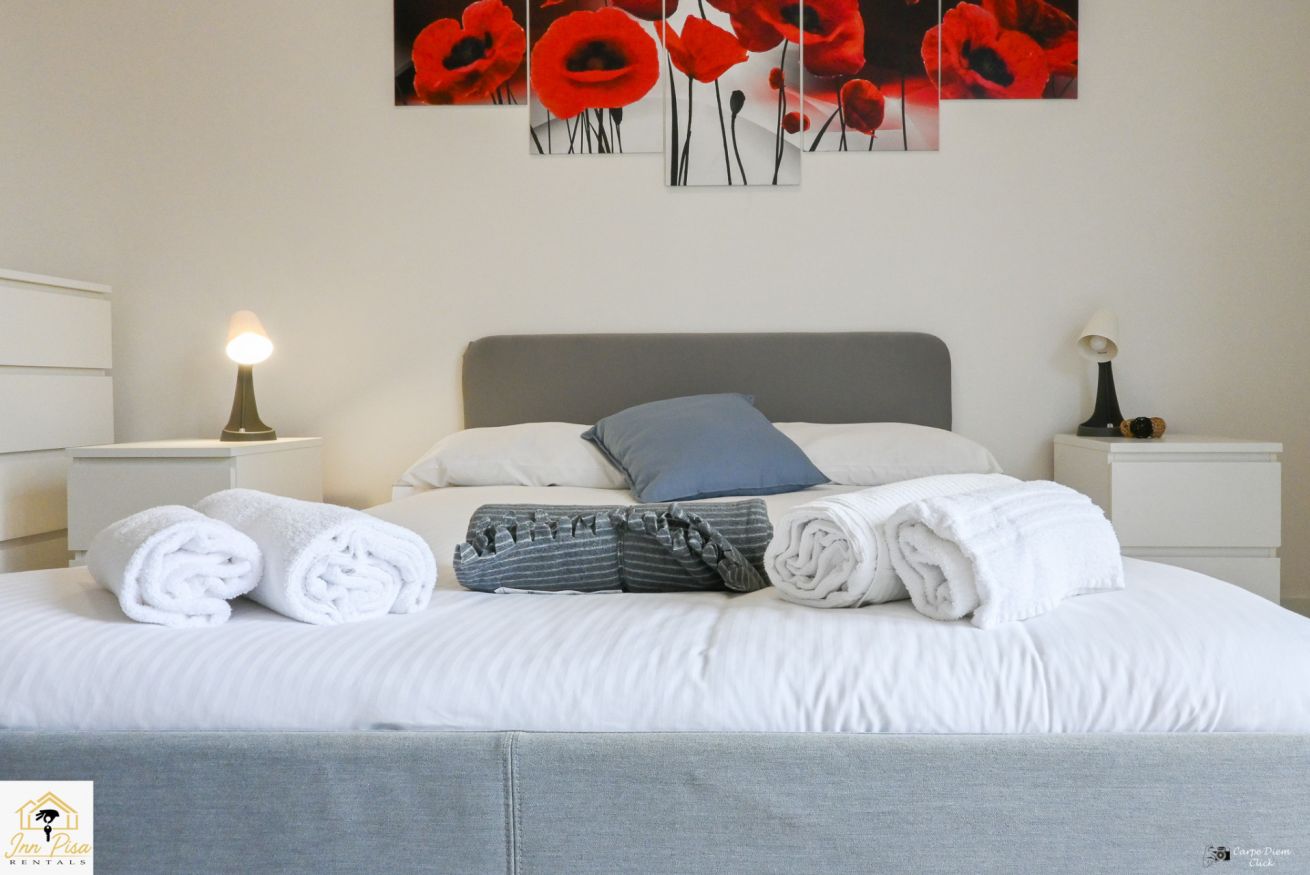 Inn Pisa Rentals - The Modern City Flat si trova a due passi dall'aeroporto di Pisa e dalla stazione dei treni.Molto vicino a tutte le principali attrazioni turistiche della città è ampio e molto luminoso,arredato con gusto in stile moderno e ricco di particolari che lo rendono davvero gradevole e confortevole.Posto al 1 piano senza ascensore,può ospitare fino a 8 persone. Si compone di ingresso, soggiorno con divano,cucina abitabile completamente attrezzata,4 camere matrimoniali,2 bagni,2 terrazzi attrezzati,WIFI