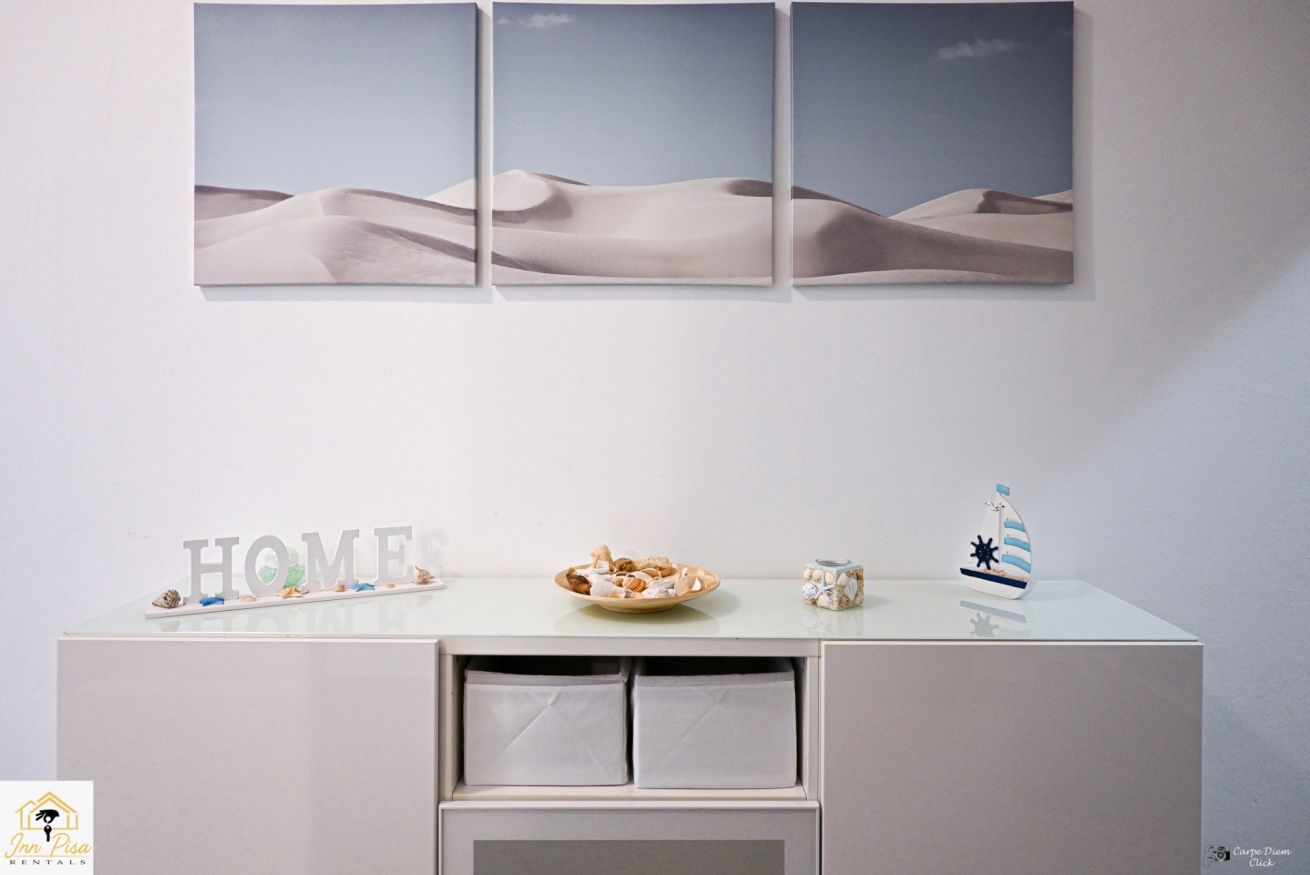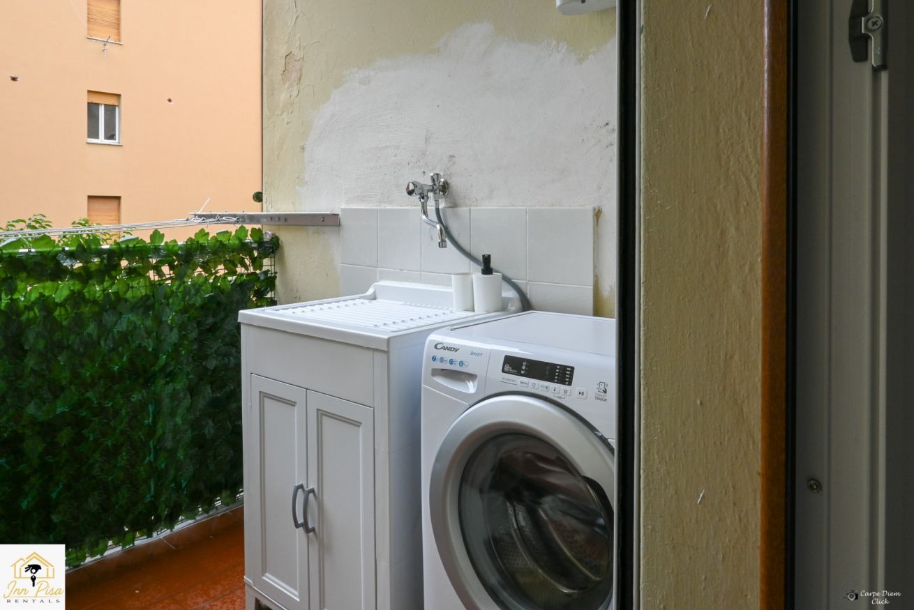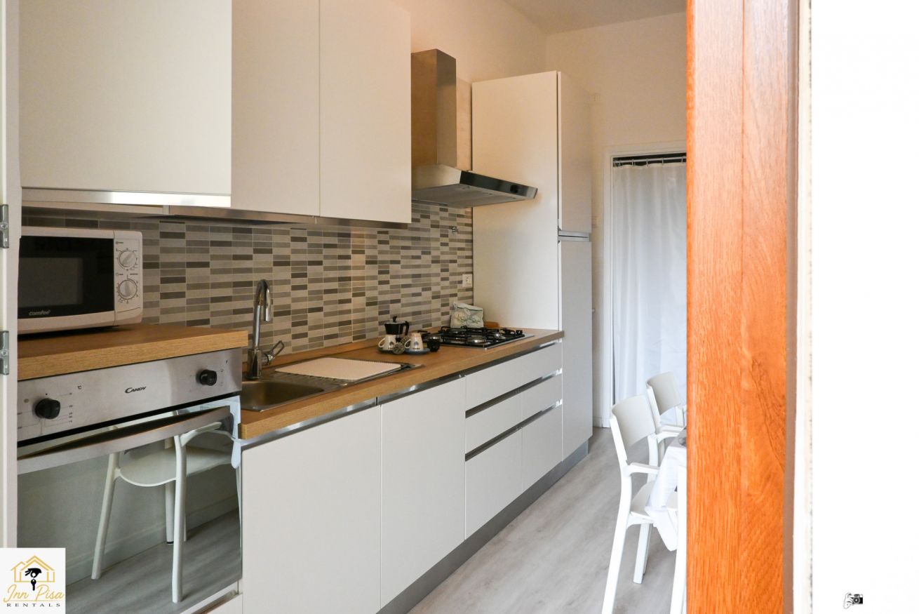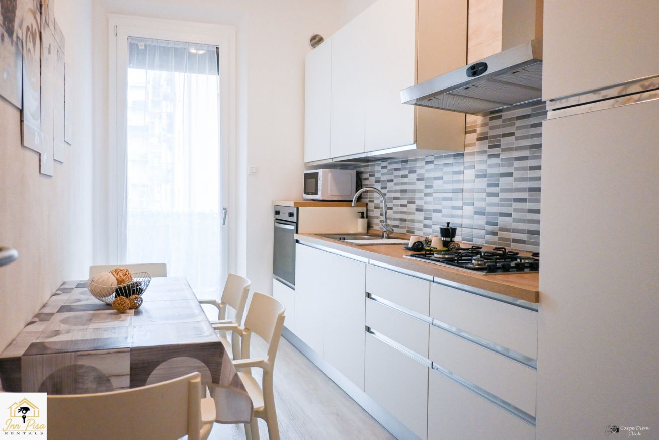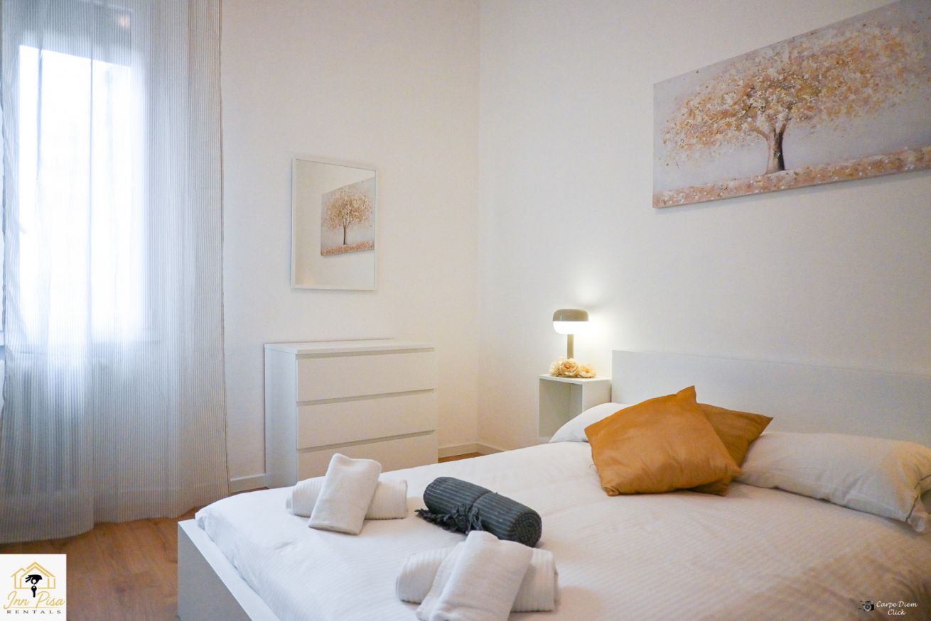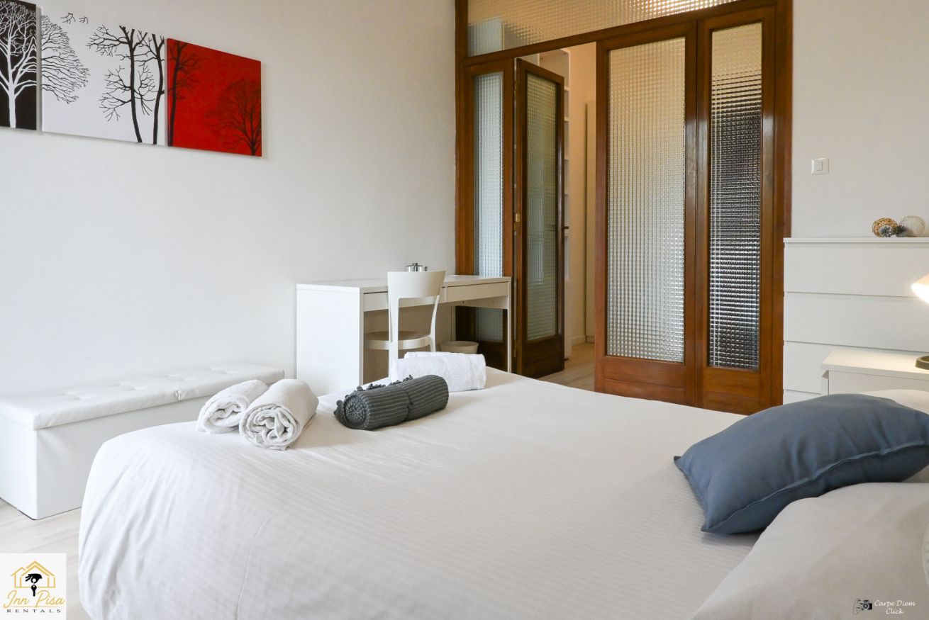 Inn Pisa Rentals - The Modern City Flat si trova a due passi dall'aeroporto di Pisa e dalla stazione dei treni.Molto vicino a tutte le principali attrazioni turistiche della città è ampio e molto luminoso,arredato con gusto in stile moderno e ricco di particolari che lo rendono davvero gradevole e confortevole.Posto al 1 piano senza ascensore,può ospitare fino a 8 persone. Si compone di ingresso, soggiorno con divano,cucina abitabile completamente attrezzata,4 camere matrimoniali,2 bagni,2 terrazzi attrezzati,WIFI