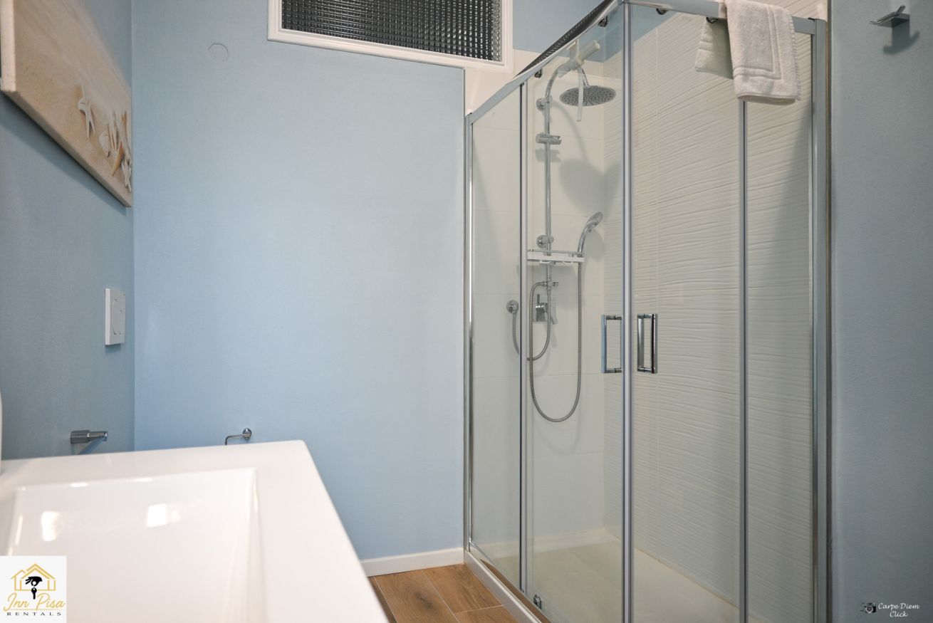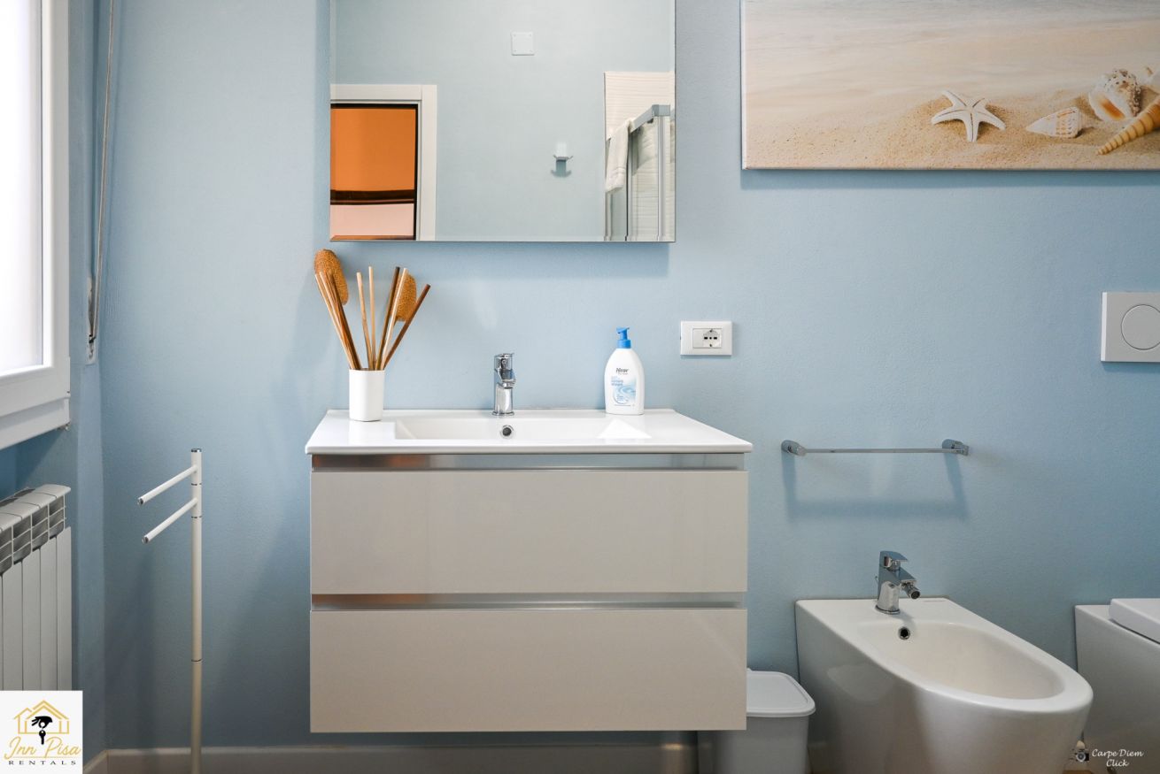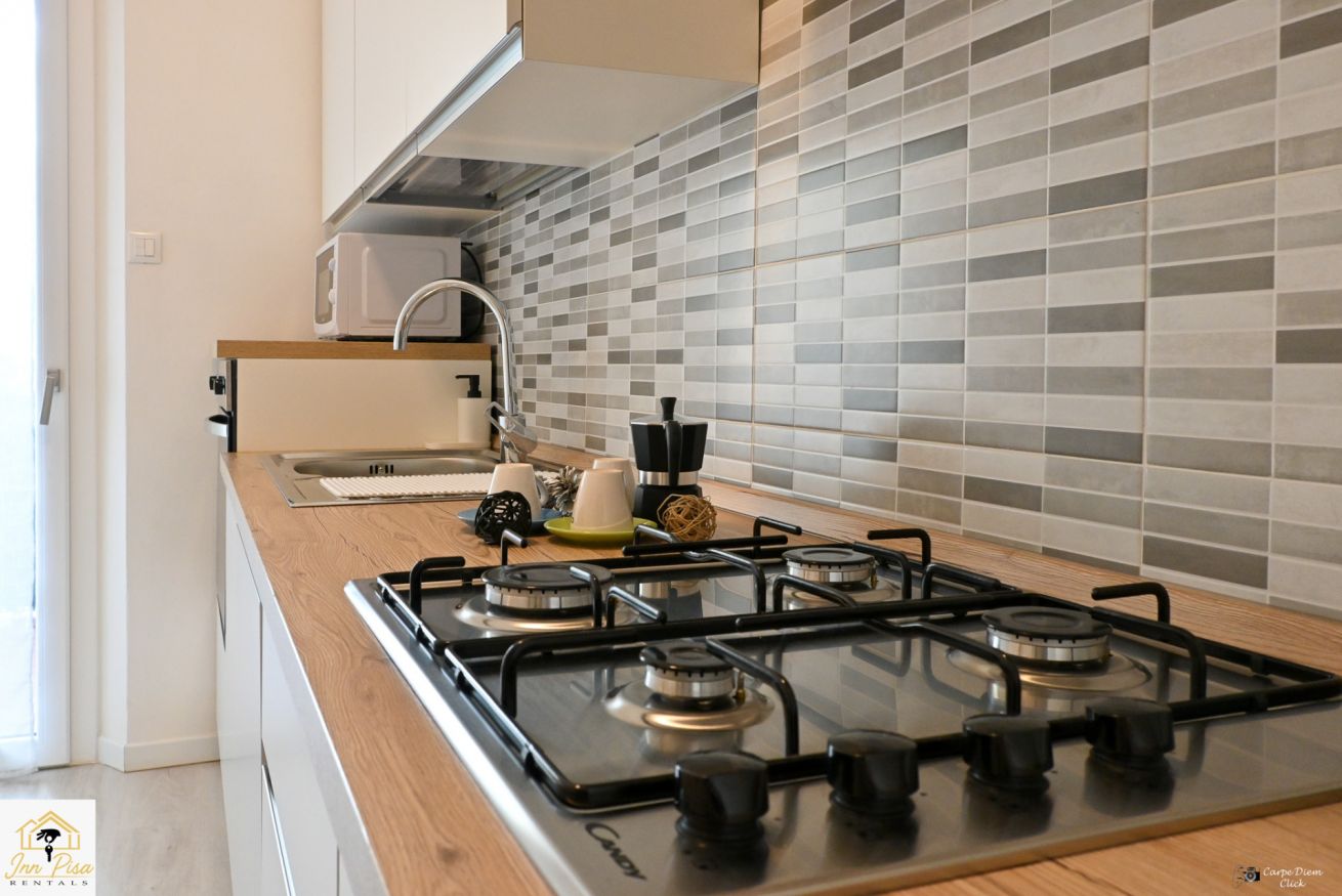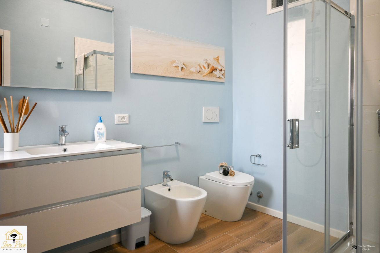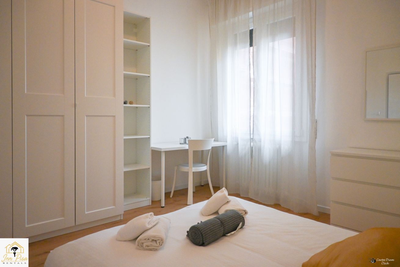 Inn Pisa Rentals - The Modern City Flat si trova a due passi dall'aeroporto di Pisa e dalla stazione dei treni.Molto vicino a tutte le principali attrazioni turistiche della città è ampio e molto luminoso,arredato con gusto in stile moderno e ricco di particolari che lo rendono davvero gradevole e confortevole.Posto al 1 piano senza ascensore,può ospitare fino a 8 persone. Si compone di ingresso, soggiorno con divano,cucina abitabile completamente attrezzata,4 camere matrimoniali,2 bagni,2 terrazzi attrezzati,WIFI